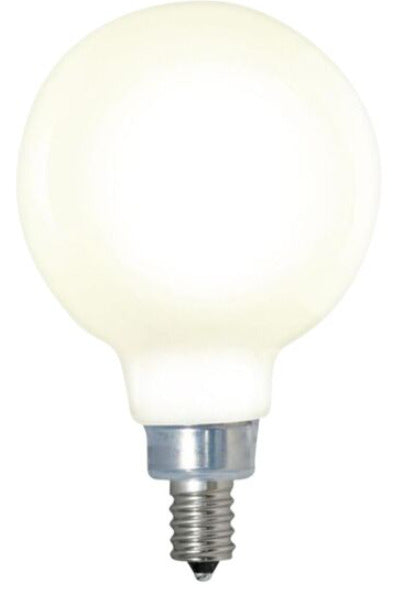 - G16 LED bulb with an E12, candelabra screw, base in a Milky finish.