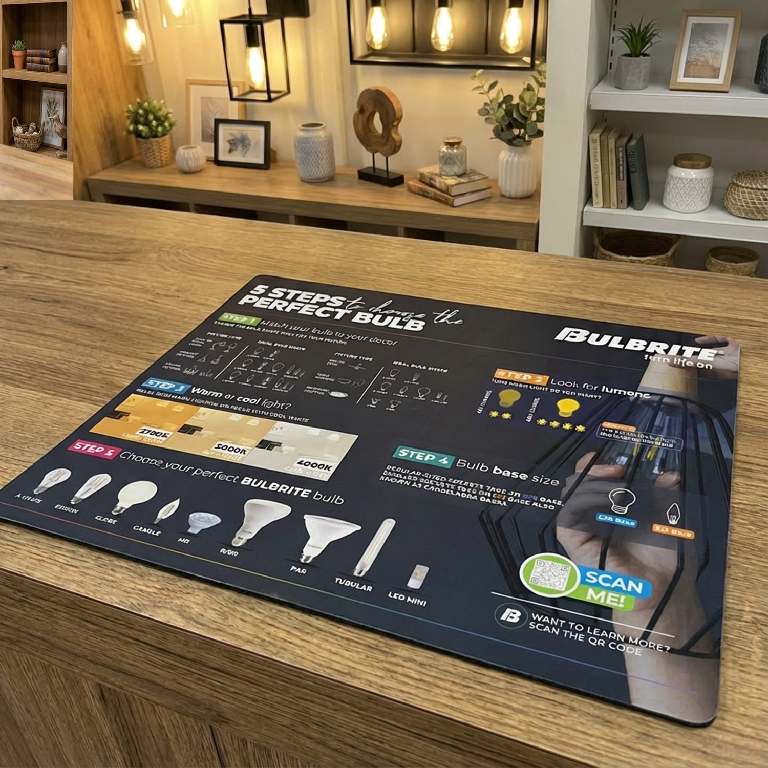 Confused about bulbs? Use our counter mat to follow 5 easy steps to choose the perfect product.