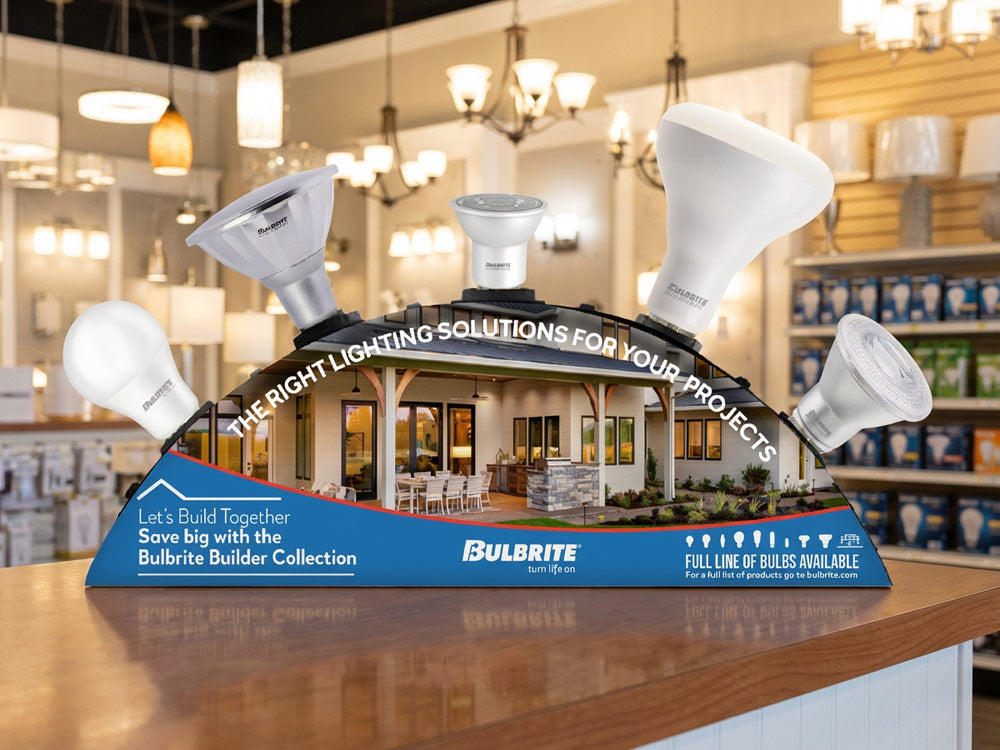 The Builder Half Moon Display is the ideal companion for showing builder customers the right Bulbrite builder bulb for their next project.