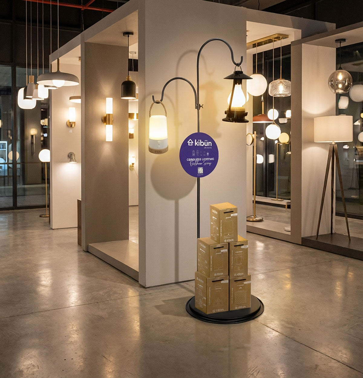 Effortlessly showcase our cordless outdoor lighting collection in a compact, smart display. Highlight multiple lamps with vertical stacking and focused lighting cues. Communicate cordless freedom, durability, and design appeal.