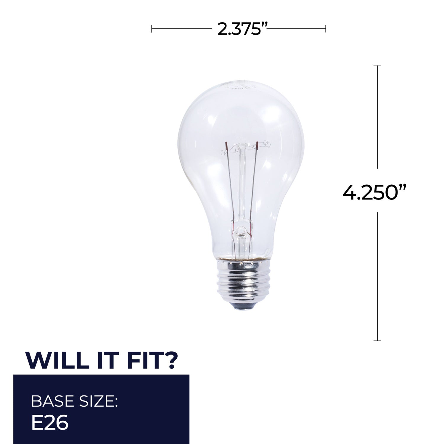 - A19 Incandescent Light Bulb with an E26 base in a Clear Finish