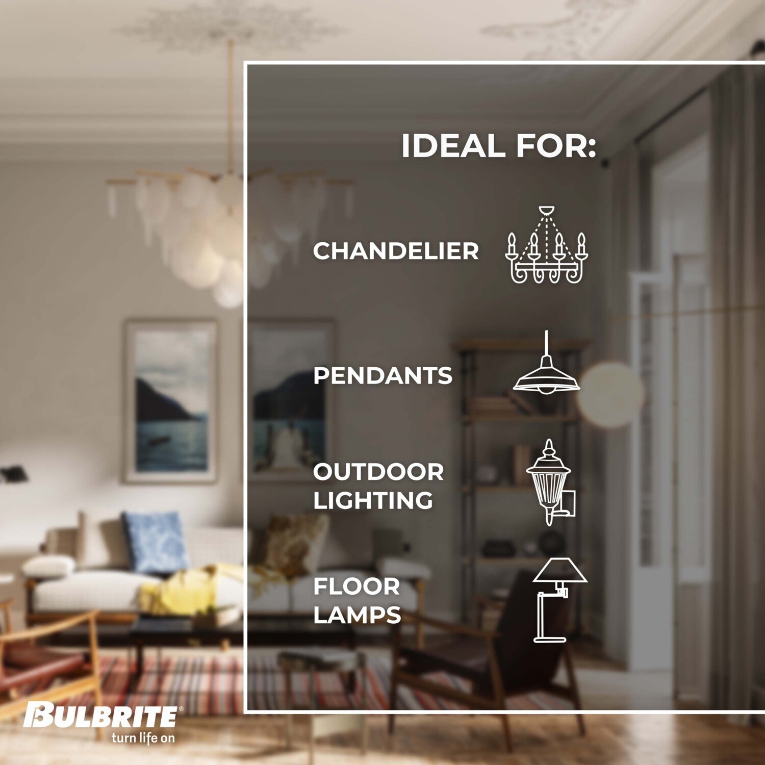 - Suggested bulbs include A-Lamps, Chandelier, Globes, and Tubular bulbs along with directional bulbs