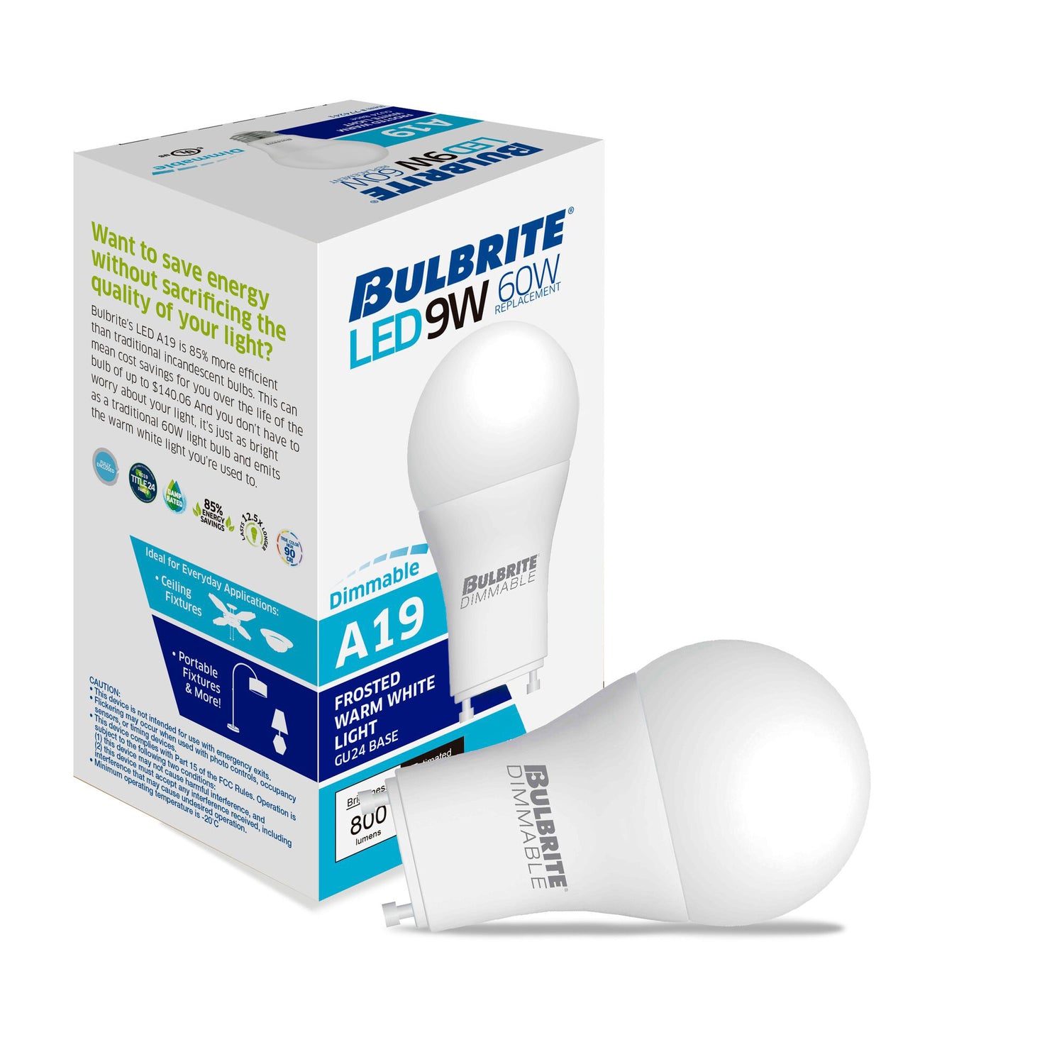 - A19 LED bulb with a GU24 base in a Frost Finish