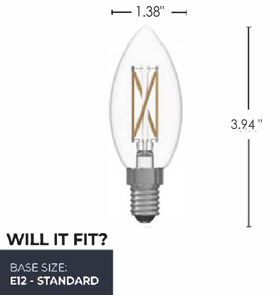 - B11 LED bulb with an E12, candelabra screw, base in a Clear finish.