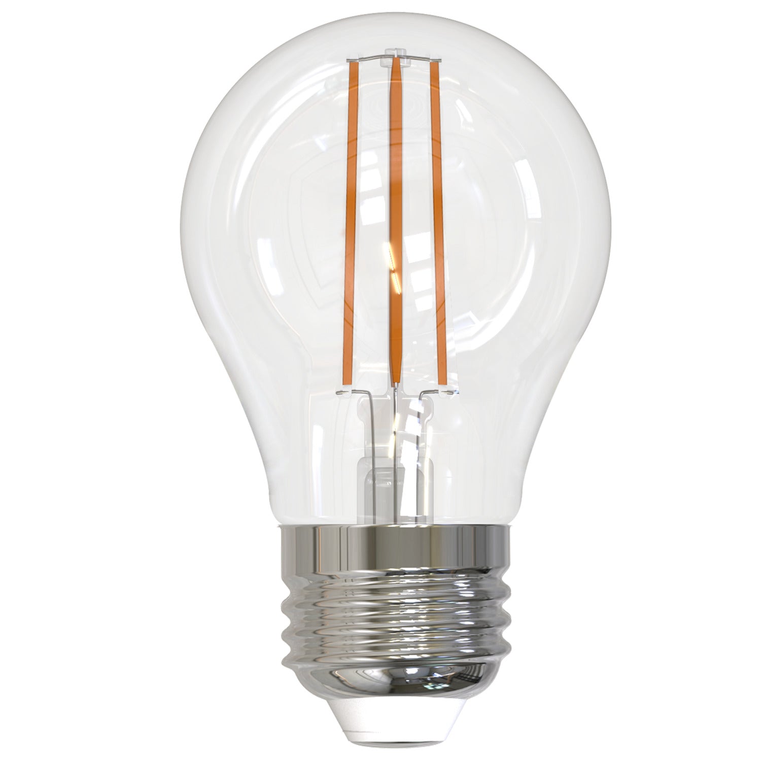 - A15 LED bulb with an E26, medium screw, base in a Clear finish.