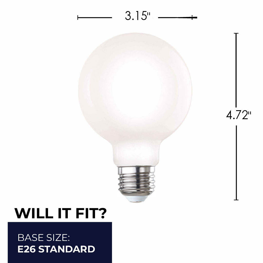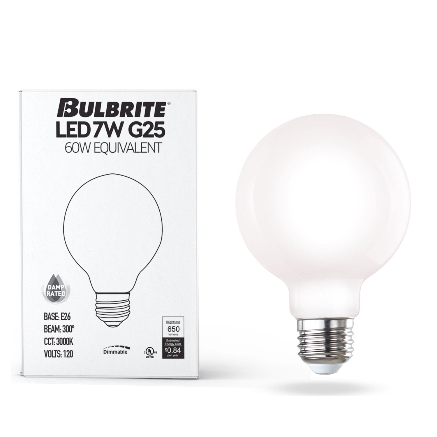 - G25 LED bulb with an E26, medium screw, base in a Milky finish.