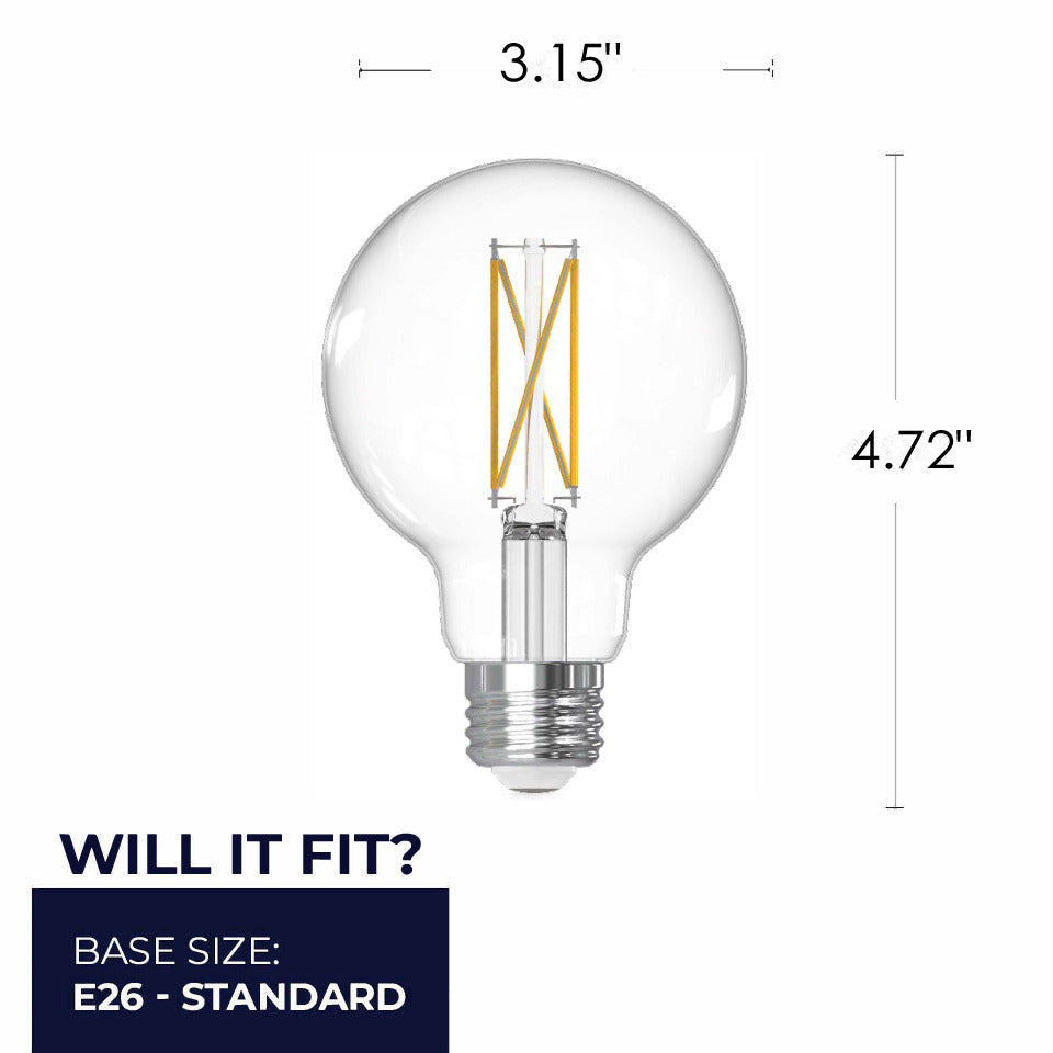 4 Pack of our decorative LED globe bulbs to enhance your space. Each bulb uses just 7.6W of power while delivering the brightness equivalent of a traditional 60W incandescent, producing 800 lumens of Warm White Light (2700K) with excellent color rendering. The clear finish provides sparkling clarity and visibility of the beautiful filament design, and the standard medium screw (E26) ensures compatibility with your existing fixtures. These dimmable bulbs are engineered for reliability, offering an impressive 15000-hour lifespan, reducing replacement frequency and maintenance costs while providing consistent, quality illumination for years to come. For over 50 years Bulbrite has grown from one man’s dream to the dream of many. But the one thing that has remained the same – our company's purpose, our guiding light (pun intended!). We believe that light is so essential – so fundamental – because it impacts every moment of our lives. Our dream is to touch the lives of many by providing the most beautiful light possible as the leader in light bulb solutions.