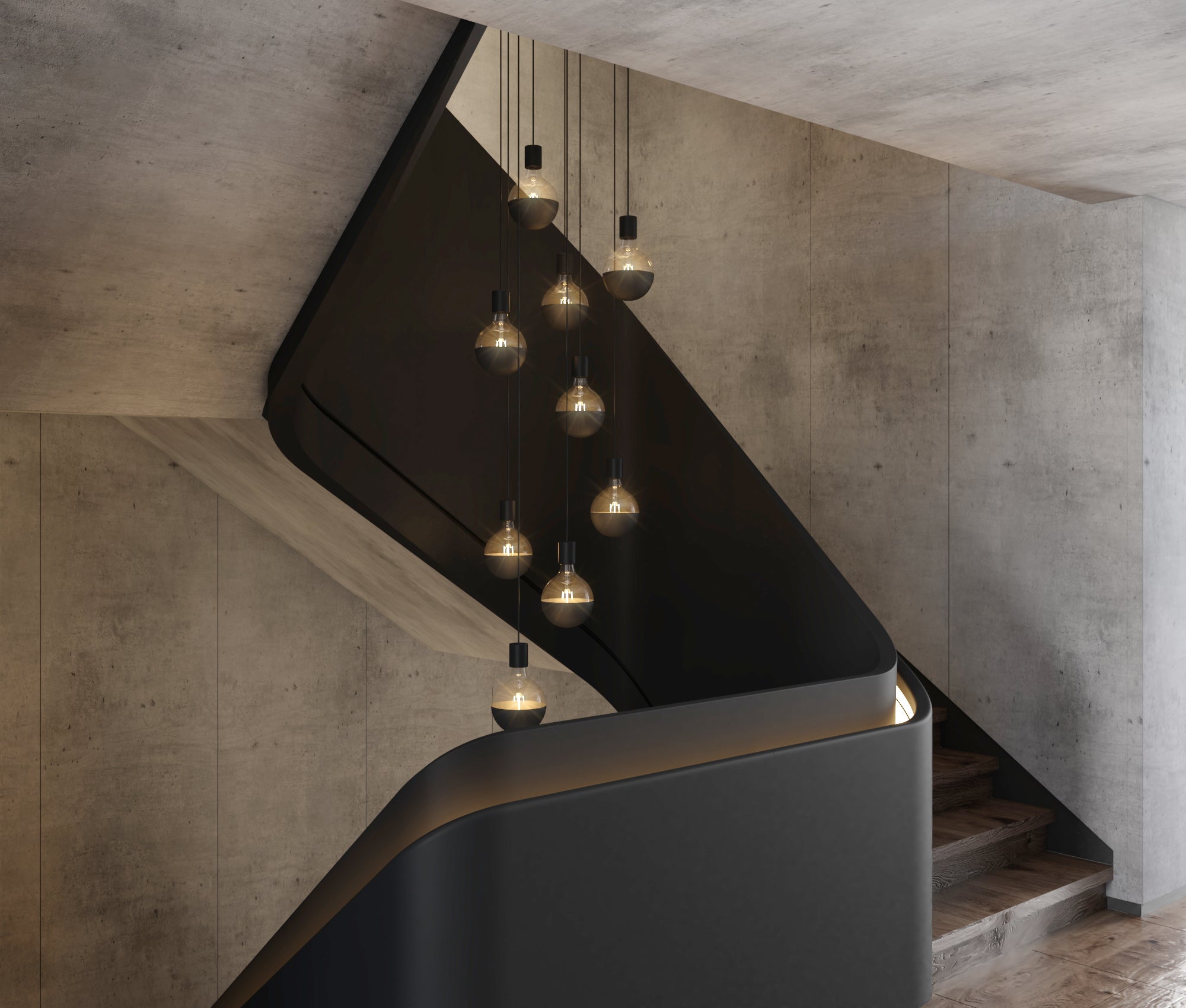 Designer Tip: Instantly refresh your pendant cluster by adding an oversized half-black bulb, creating a bold statement piece that’s sure to stand out.